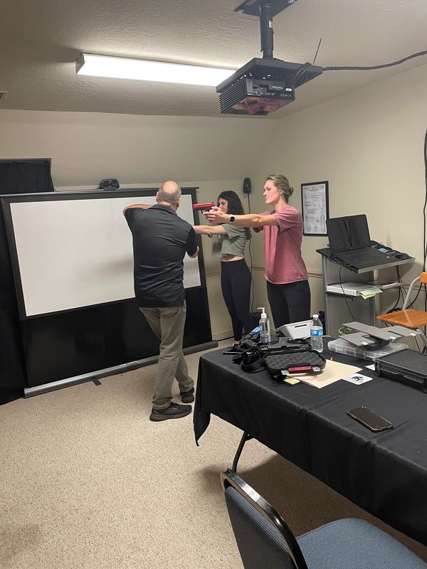 Choose from 60+ real world scenarios that will test and hone your situational awareness skills in the safety of a classroom. You will receive instruction, guidance, and feedback throughout your experience. This training uses recoil enabled laser pistol and AR-15 for a realistic and immersive experience. Some scenarios may contain graphic imagery and language. Small groups are welcomed and encouraged.